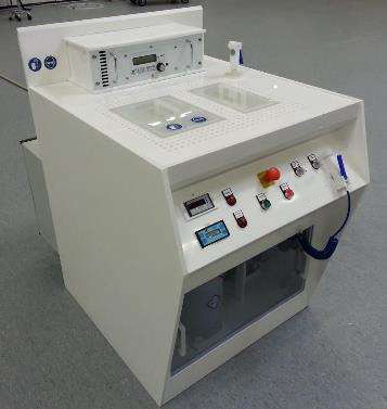 As all our system, the μGalv Pro system is available with many options. Automatic Handling (Semi Auto, Dry in - Dry out), integration of pre-processing or post-process cells, laminar flow-units, vacuum twizer, quick connector for draining of electrolytes, interface to handling process data, etc.